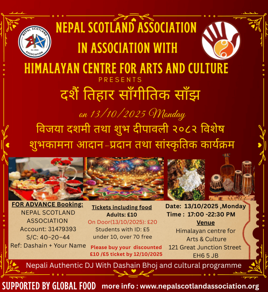 We have been involved in various projects around Leith and Edinburgh area, such as earthquake relief project, Scottish climate change project and organizing various annual Nepali cultural programs with the local and other ethnic minorities’ community.